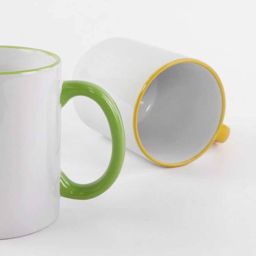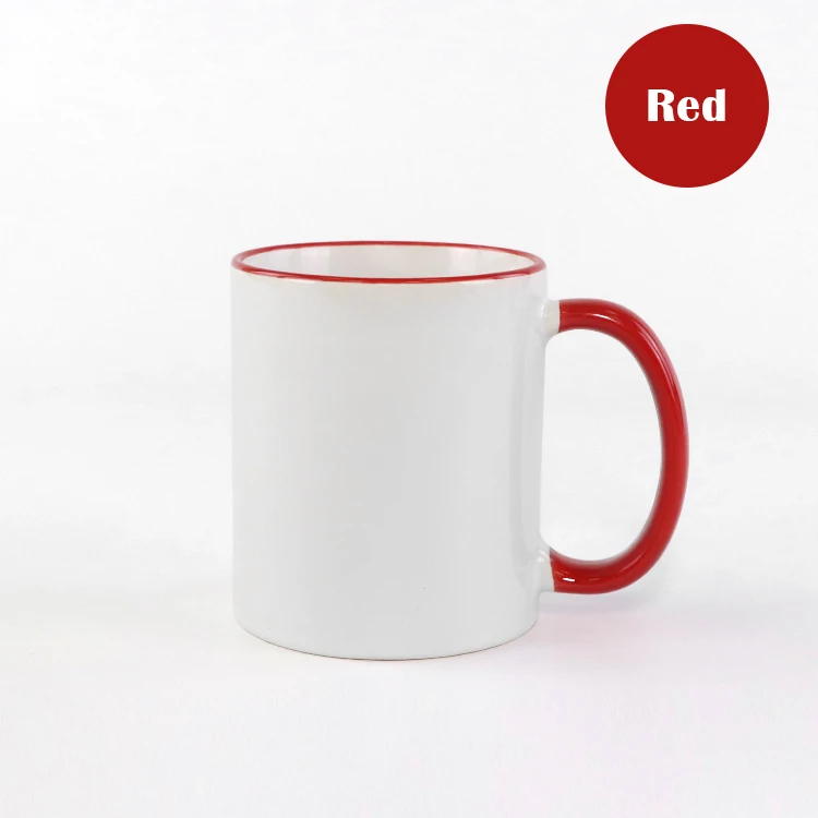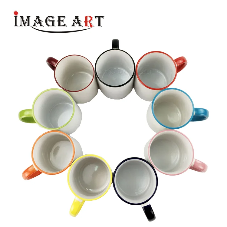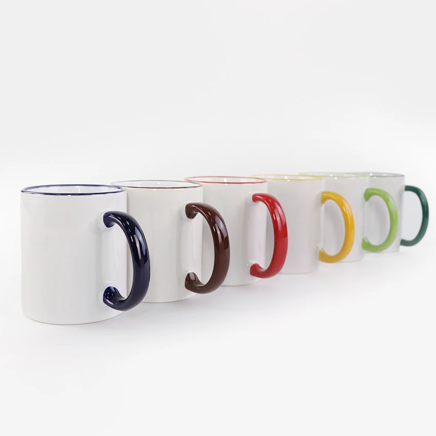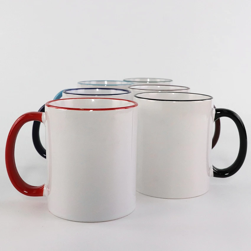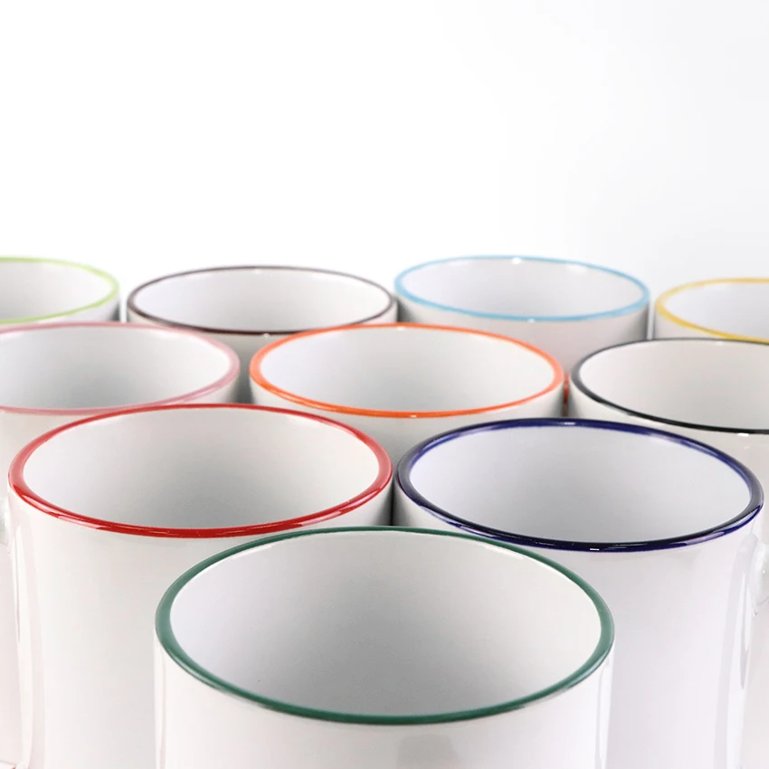 11oz Ceramic Sublimation Rim Color Handle Mugs with Coating