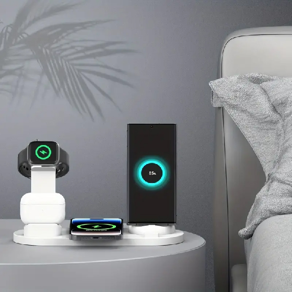 - এতে রয়েছে মাল্টিফাংশনাল ওয়ারলেস চার্জিং স্টেশন যা দিয়ে একসাথে বিভিন্ন ডিভাইস খুব সহজেই চার্জ দেওয়া কেন এই ডিভাইসটি ব্যবহার করবেন একসাথে ৬টি ডিভাইস চার্জিং সুবিধা রয়েছে