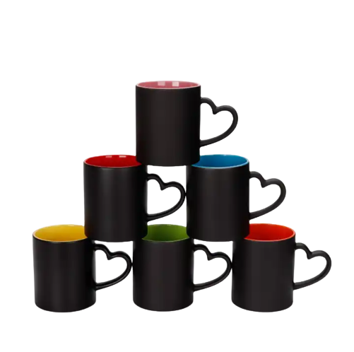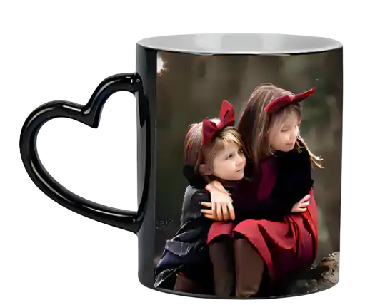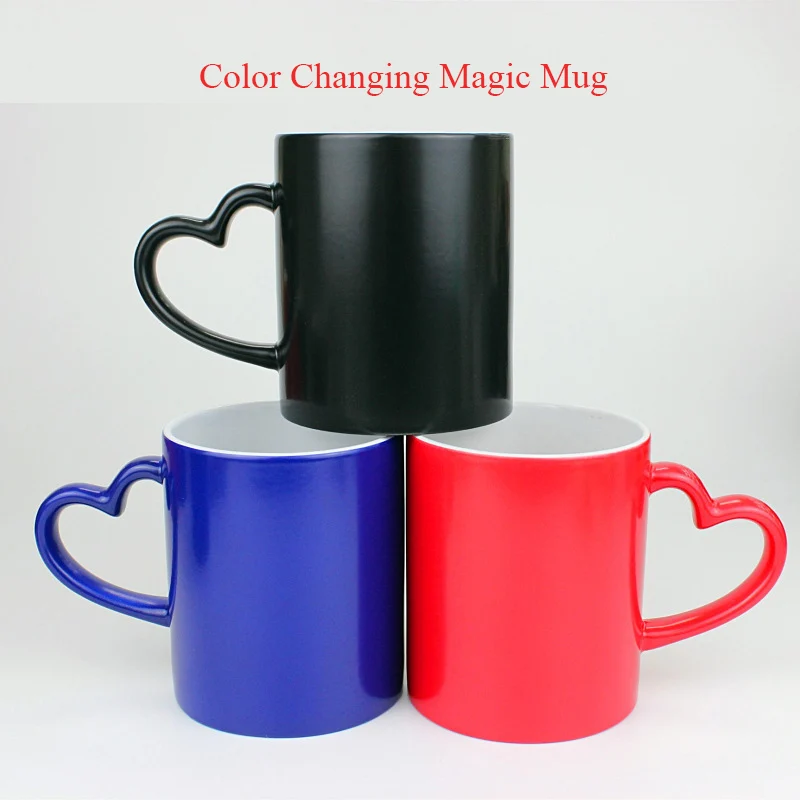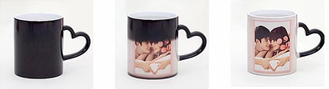 Heat sensitive material on the mug surface colour when hot liquid is poured in.